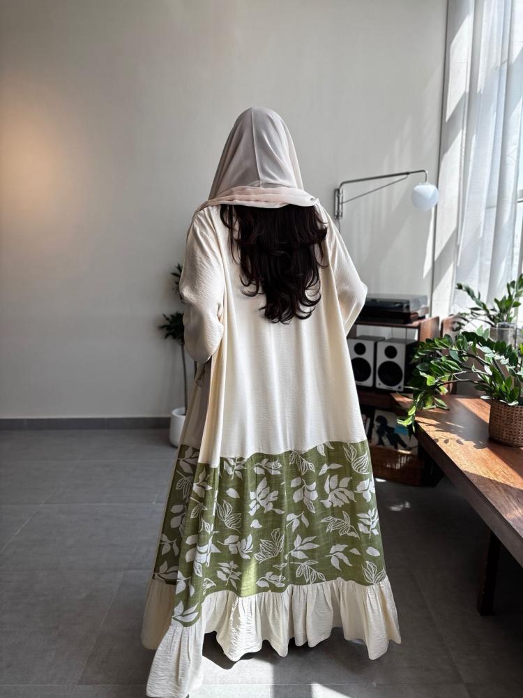 عباية اوف وايت من متجر هيا تجمع بين الأناقة والعصرية بتصميم واسع ولون فاتح يمنحك طابع راقي وناعم يناسب مختلف الإطلالات.