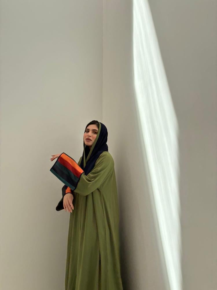 - عباية زيتي يمكن تنسيقها مع إكسسوارات بسيطة وصندل أنيق لإطلالة راقية وجذابة.