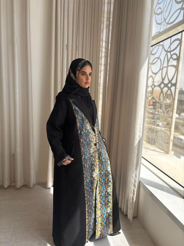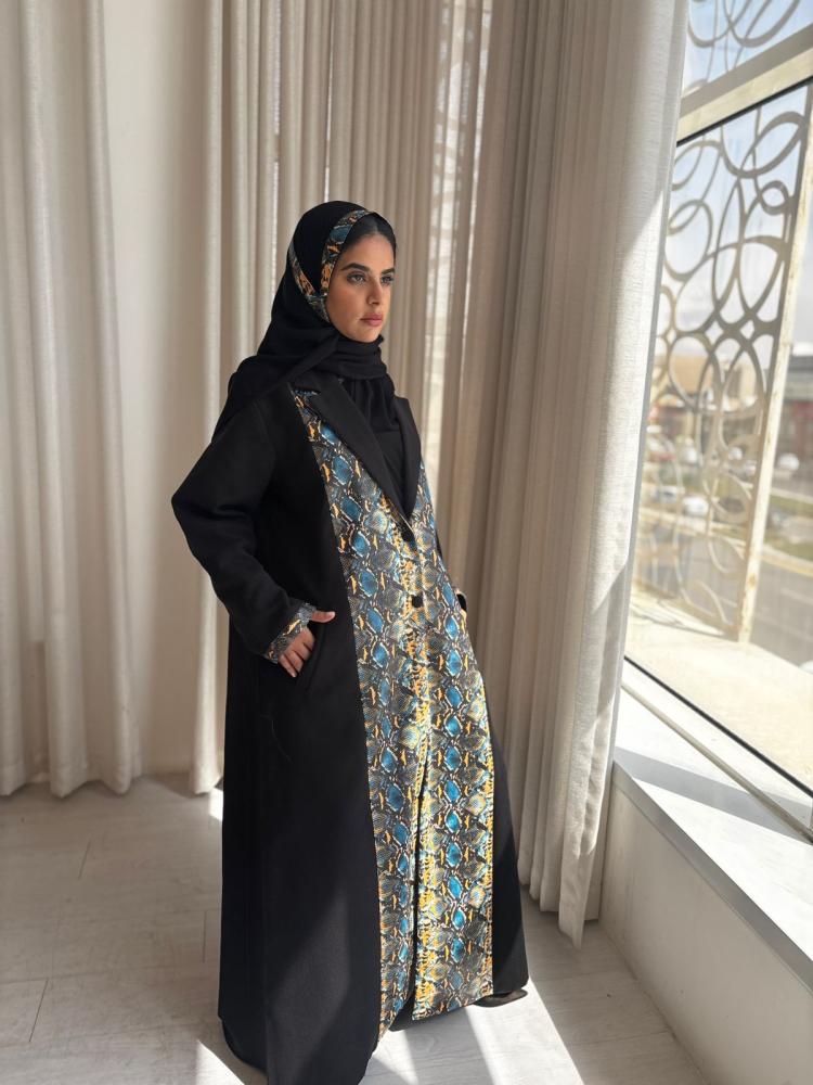 عباية قصة بليزر كلوش نوع القماش جوخ مع جلد