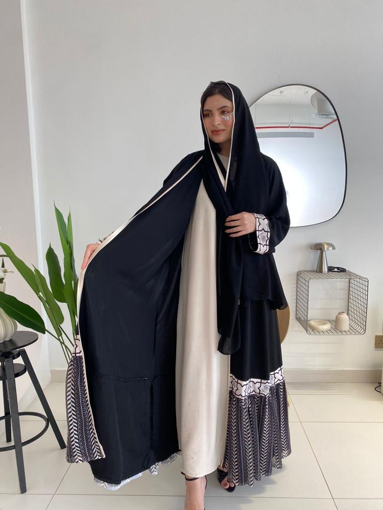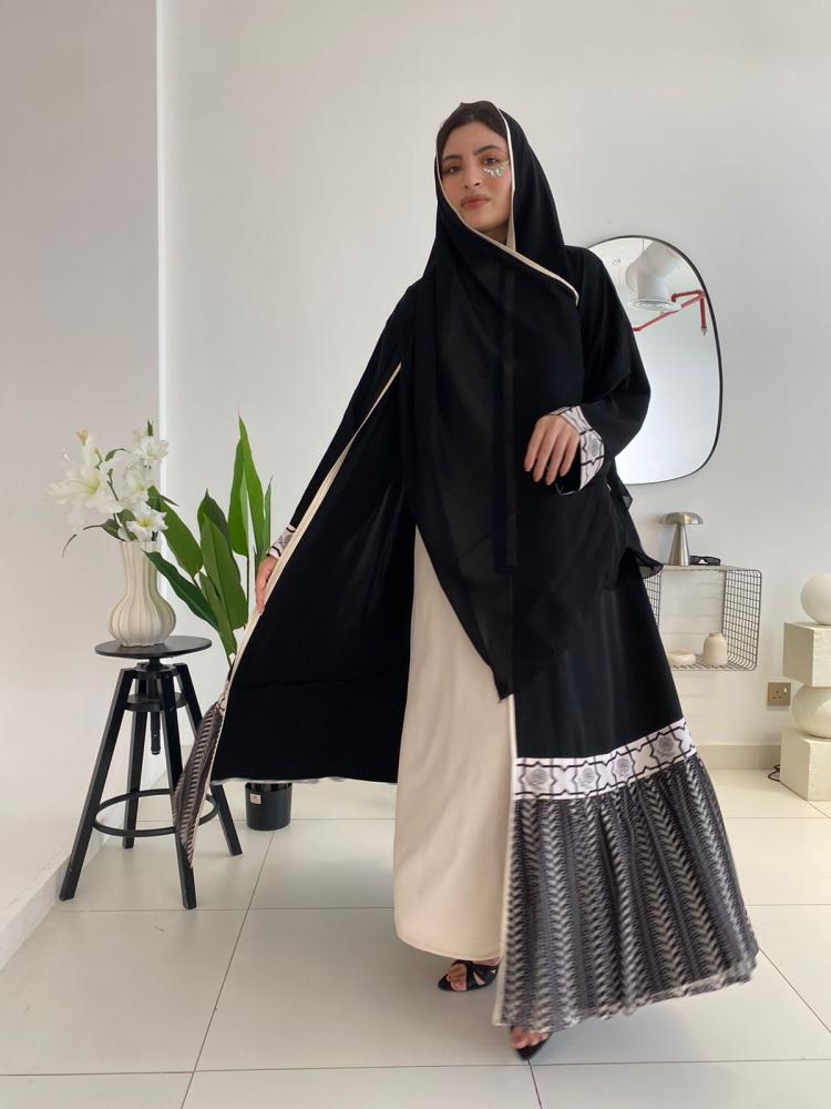 - اللون: أوف وايت أنيق يليق بجميع العبايات.