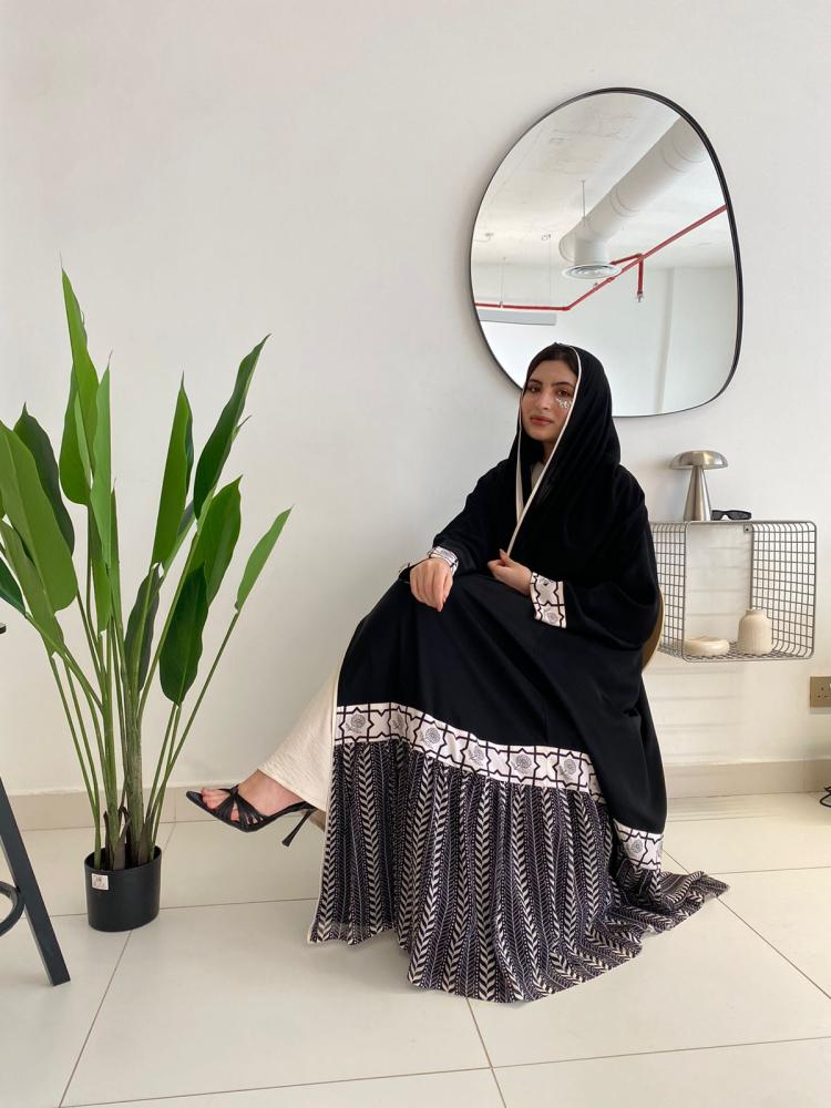 التطريز اليدوي المعقد يعكس الذوق الرفيع ويضيف لمسة فنية تجعل العباية فريدة من نوعها.